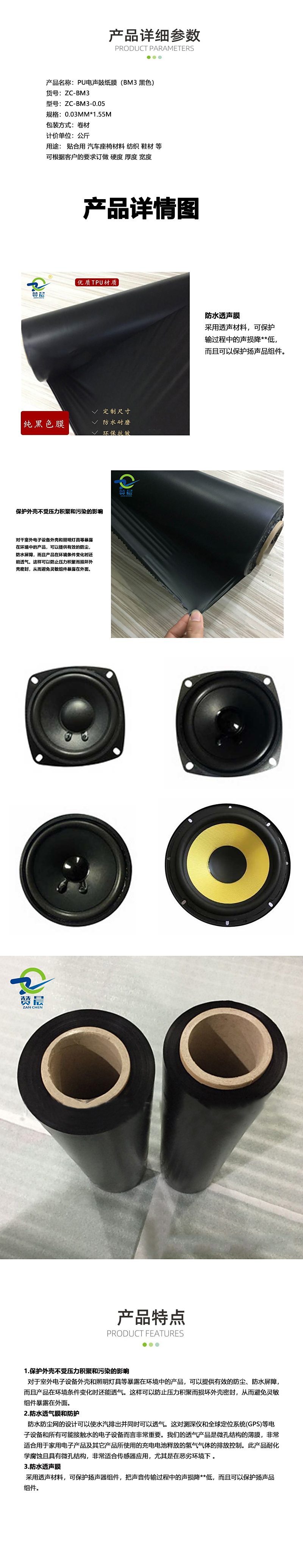 電聲膜音響膜黑色單霧面TPU膜環保耐溫喇叭tpu薄膜